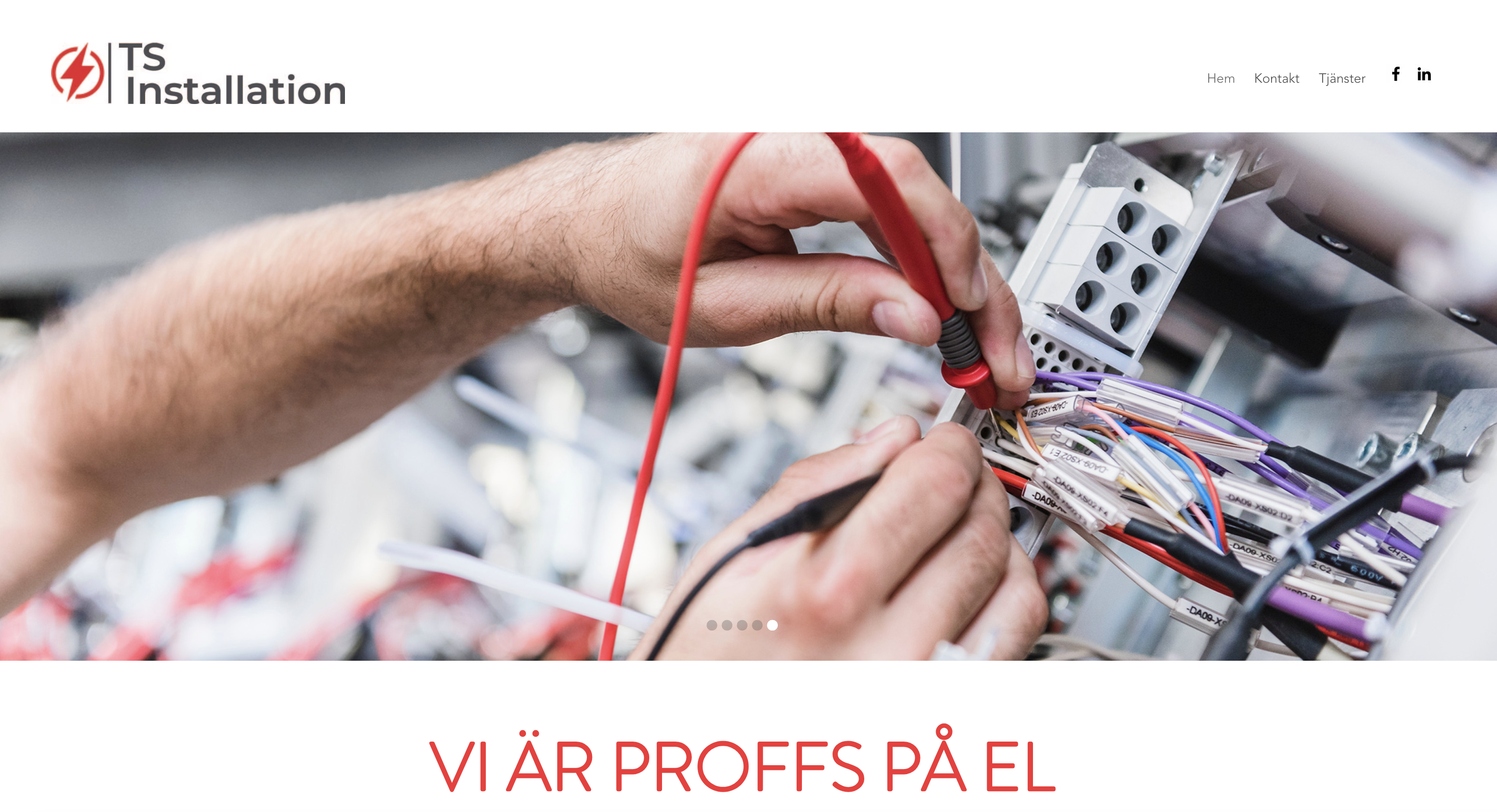 TS Installation hade en enkel, ljus Wix-sajt som inte kommunicerade seriositet eller kompetens. En industrikund som jämförde offerter och kollade deras sajt fick intrycket av ett hobbyföretag – inte ett företag med 100+ genomförda projekt och auktoriserade elektriker.